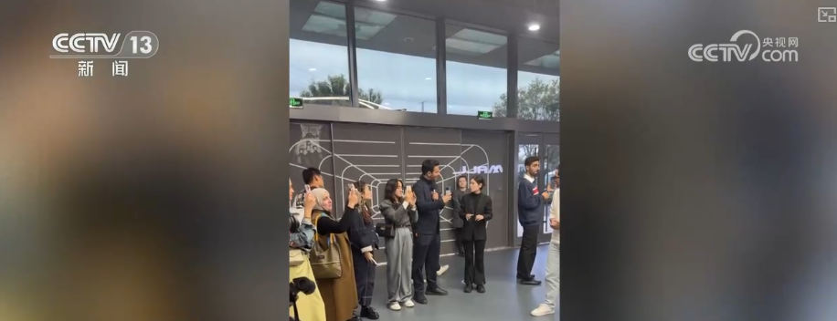 除了生活,在中国工作的体验如何?老王还见到了另一位“中国通”——伊拉克小伙方浩明。之前他在阅兵现场落泪的视频让他在网上火出了圈。这次见到他时,他没哭,正带着10位阿拉伯朋友参观中国的智能汽车工厂。