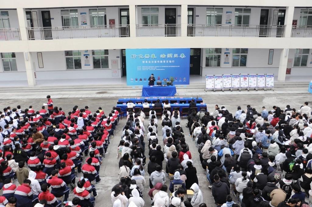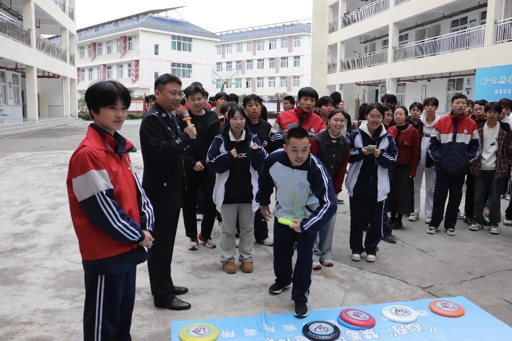 “吸食冰毒会严重损害中枢神经系统!”“国际禁毒日是每年的6月26日!”……寓教于乐的“禁毒问答飞盘游戏”成为全场亮点。彩色飞盘上印着禁毒知识题目,内容涵盖毒品知识、法律法规、防范技巧等。各班学生组队竞技,奔跑接盘、踊跃抢答,五彩飞盘在空中飞出一道道青春的弧线,也将禁毒知识“掷”进同学们心中。