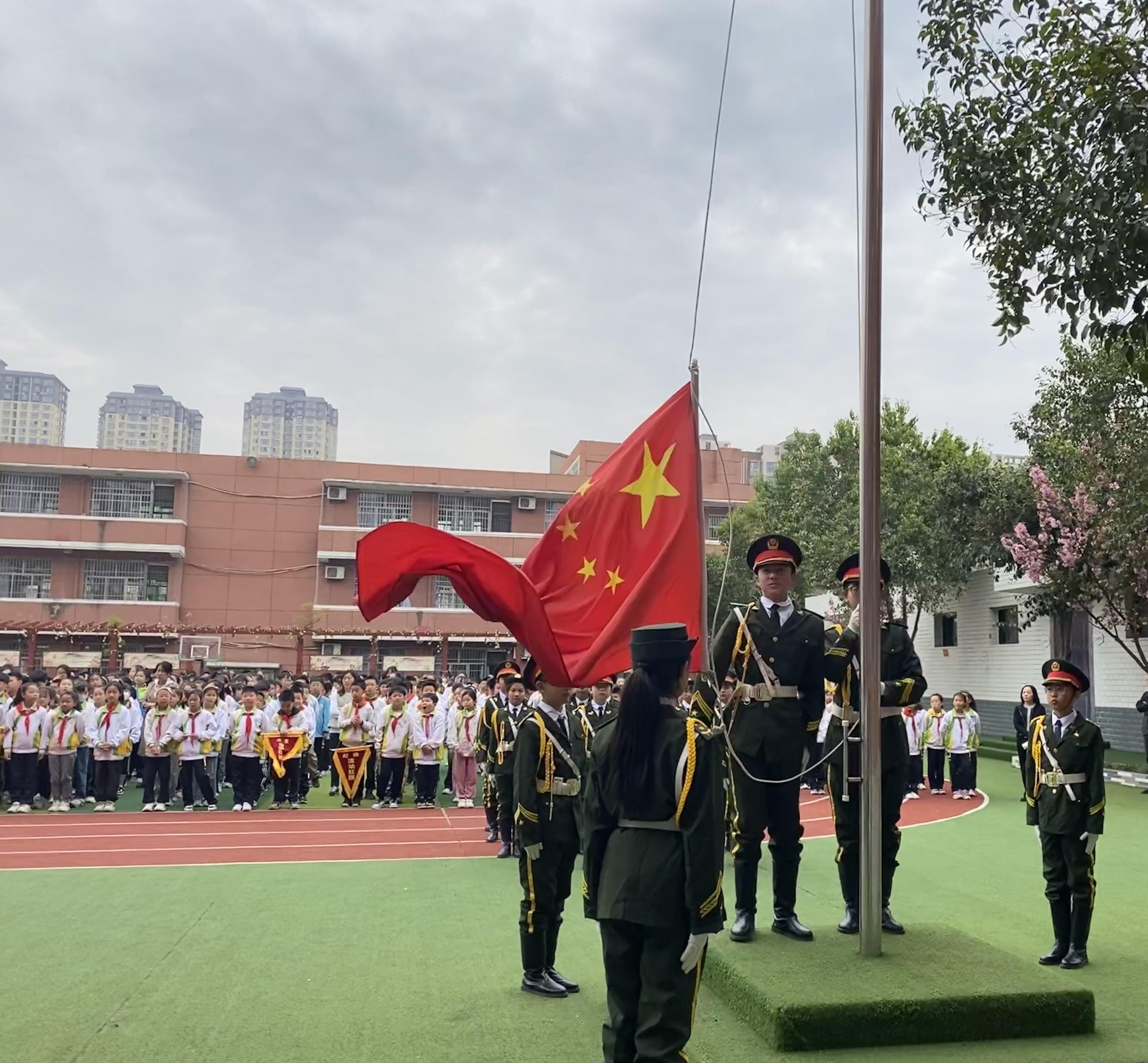 “立正!敬礼!”学校定期与空军工程大学信息与导航学院共建的“小禾苗国旗护卫队”都会进行严格训练。这支队伍不仅承担着护卫国旗的使命,更成为校园爱国主义教育的重要载体。