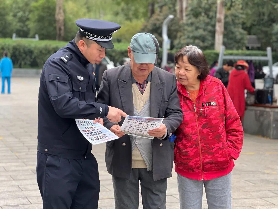 除了固定宣传点,民警还开启了“流动科普”模式。他们沿着公园步道、树林周边、水域岸边巡逻,将保护理念送到公园的每个角落。“如果发现有人架设捕鸟网、掏鸟窝,或者伤害、贩卖鸟类,一定要第一时间联系派出所或拨打110。”民警向晨练的老人、散步的情侣、写生的学生发放宣传资料,并细致讲解。