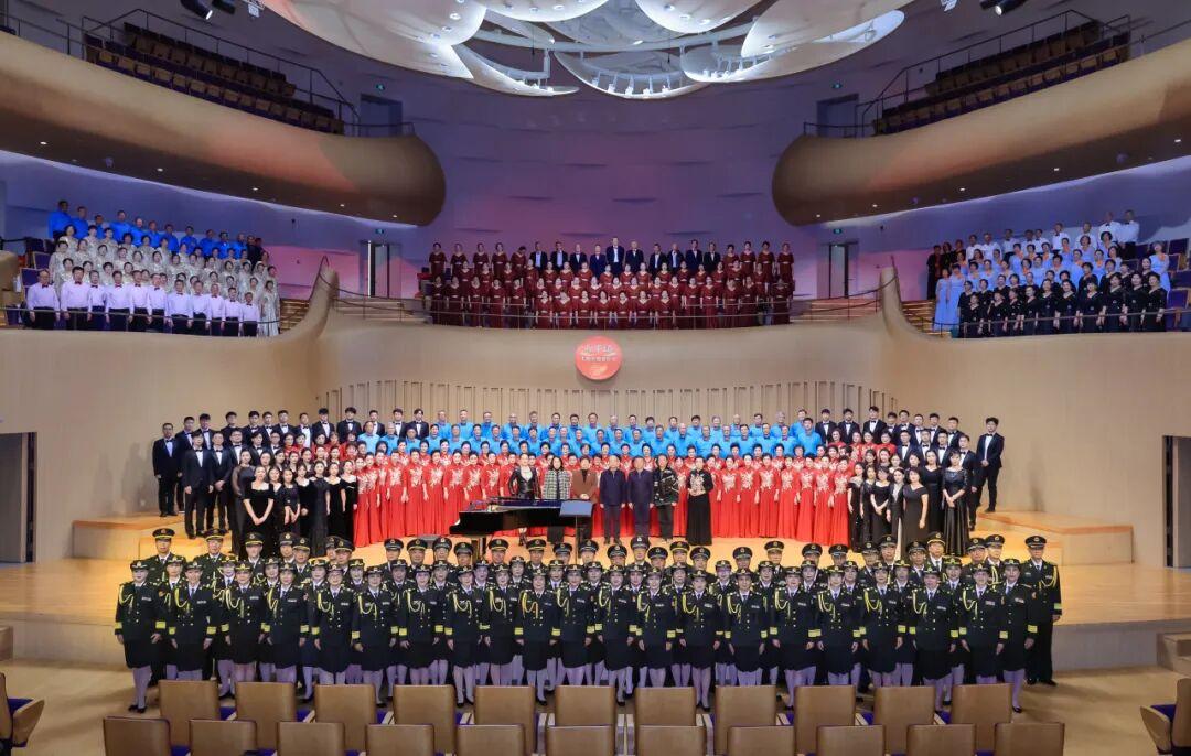 音乐会的尾声,在指挥家王培的执棒下,全场起立,千名演员与观众共同高唱《保卫黄河》《歌唱祖国》。激昂的旋律与豪迈的歌声交织回荡,凝聚起对历史的敬仰、对和平的珍视以及对祖国繁荣昌盛的美好祝愿,将现场气氛推向最高潮。