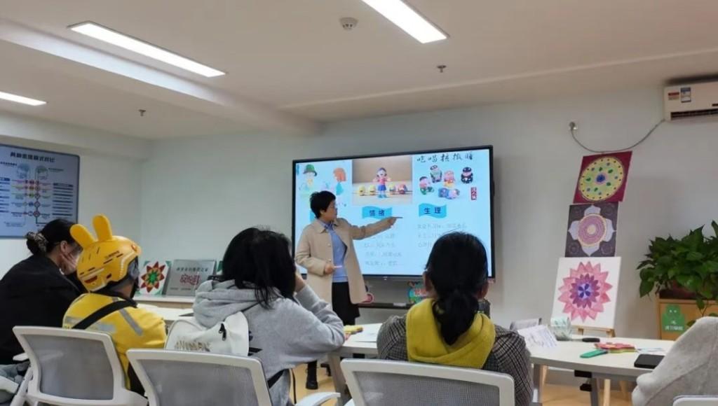 友联中心主任张洁介绍了项目背景及活动内容。来自安心湾的专业心理老师张蕊围绕情绪管理、减压疏导、心理疗愈技巧展开教学。她结合心理学ABC理论,用通俗易懂的语言帮助参与者拆解情绪产生的原理,深入分析心理问题的成因及影响,同时现场传授实用的日常情绪调节方法,比如快速平复愤怒、缓解焦虑的“3秒深呼吸法”,以及利用碎片化时间放松的“微冥想指南”。