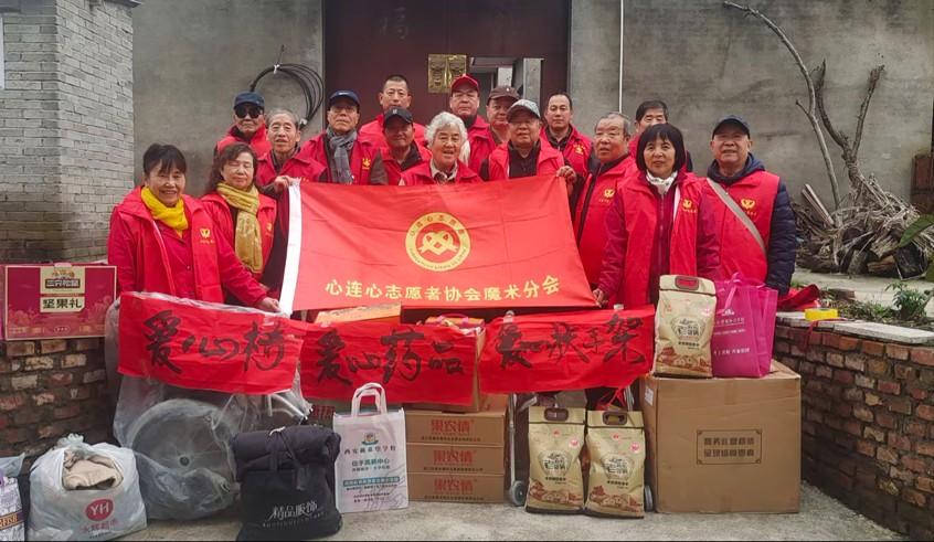 白鹿观村的老兵鹿先生,是此次慰问的重点牵挂对象。父母双亡、妻子离家带走独子,自身伤残的他独自生活,日子格外艰难。得知其困境后,心连心魔术分队长岳勇经多方协调,筹备半年为他征集到轮椅,后续听闻同村村民患病,又立刻发动志愿者捐助——张佰胜捐赠价值千元药品,赵爱玲送来三袋大米,长安大学教授张孟宇捐出电暖气和三袋衣服,尚保泰、张安全分别捐助衣物十五件、二十件,岳勇自己也购置了食品和扶手架子,杨小霞继上次捐款500元后,此次再添三袋食品。当志愿者合力将轮椅、微波炉、棉衣和满满当当的食物搬进鹿君君家时,这位朴实的老兵反复念叨:“没想到大家这么记挂我,这个冬天不冷了。”