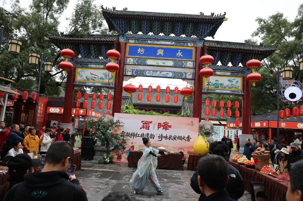 三秦都市报-三秦网讯(记者 代泽均)10月23日,西安永兴坊开展“霜凝柿红非遗韵 诗咏长安烟火香”霜降节气活动,从非遗展演到啃柿大赛的民俗互动,再到长安暖锅的烟火体验,让市民游客沉浸式体验霜降民俗,感受中华传统文化的魅力。