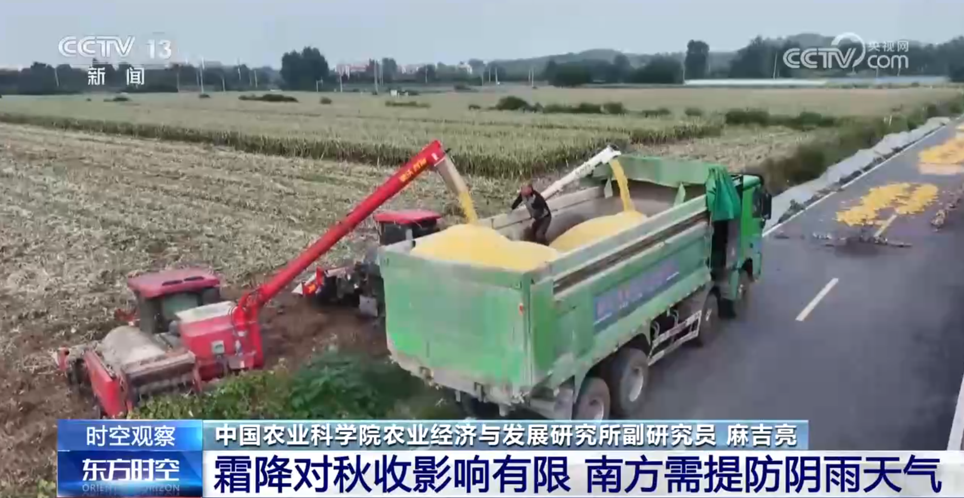 霜降时节主要开展的农事活动是秋收、秋种、秋整地。截至10月22日,黄淮海地区的秋收已经接近八成。整体上来说霜降对于全国秋收的影响是有限的。但是南方区域的阴雨天,可能会对晚稻收获产生一定的影响,需要进行提防。