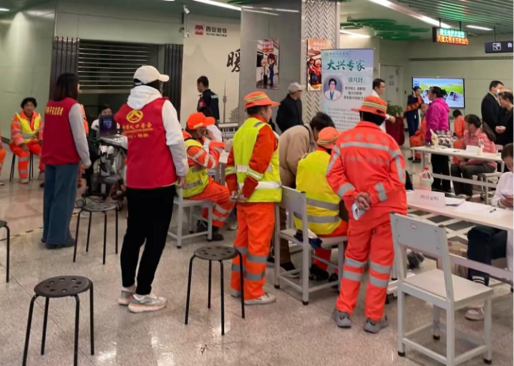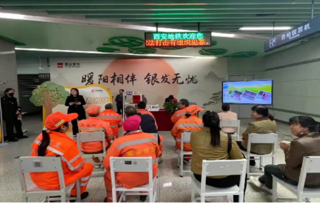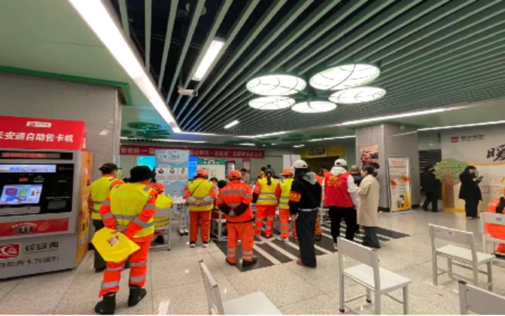 三秦都市报-三秦网讯(记者 姬娜)10月24日,西安市碑林区长乐坊街道兴庆社区银发暖心志愿服务队联合西安市长乐公园地铁站,在地铁站厅内共同开展“暖阳相伴 银发无忧”第二期关爱环卫工人志愿服务活动。