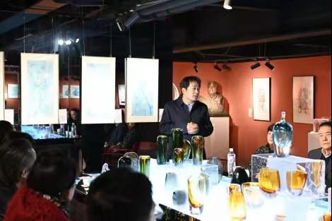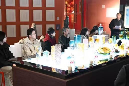 研讨会的第二个高潮,是艺术家们的发言。薛宏权大师的女儿介绍了薛大师的皮影作品,薛宏权作为陕西在世国大师之一的皮影艺术大师,他让古老的角色在光影下演绎着新的故事。艺术家王晶介绍了自己的蓝莲花系列作品,王晶的蓝莲花系列作品多次在国内外办展,受到广泛好评。艺术家魏兆辉在发言中提到综合材料与空间叙事的关系,同时对各位专家的莅临表示感谢。刘馨潞在介绍了自己的琉璃和雕塑作品的同时,也介绍了未能到场的邰立平大师的作品,邰立平大师将传统年画的色彩与构图解构,融入现代视觉元素,使“门神”也能与都市对话。他们让传统的材质,发出了时代的新声。同时还介绍了未能到场的北京电影学院刘奕博的当代前卫摄影作品、李宗林的玻璃艺术和王悦溪、武文婷的珐琅彩作品。年轻的艺术家是一群在传统与当代、技艺与观念之间游走的探索者。他们的名字,与他们所代表的艺术实践,也是这次展览的坚实的核心。艺术家翟树仁不仅介绍了自己的壁画作品同时和专家展开了工艺美术如何坚守初心的问题讨论。艺术家何臻禹以壁画的语言诉说内心的风景,同时在发言中也向专家们探讨了自己创作中的困惑。
