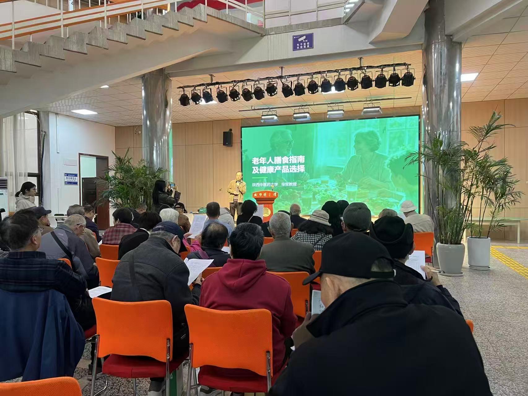 此次讲座特邀陕西中医药大学辛宝教授主讲。他以《老年人饮食养生与健康产品的科学选择》为题,结合《中国老年人膳食指南(2025)》,剖析老年人生理特点,围绕“科学膳食搭配”和“健康产品甄选”两大核心,讲解了日常饮食搭配关键要点,普及了基础健康习惯,并区分普通食品、保健食品、特医食品等六类健康相关产品的功能与适用人群,通过案例警示保健食品选择误区,为老年群体筑起“健康防线”。