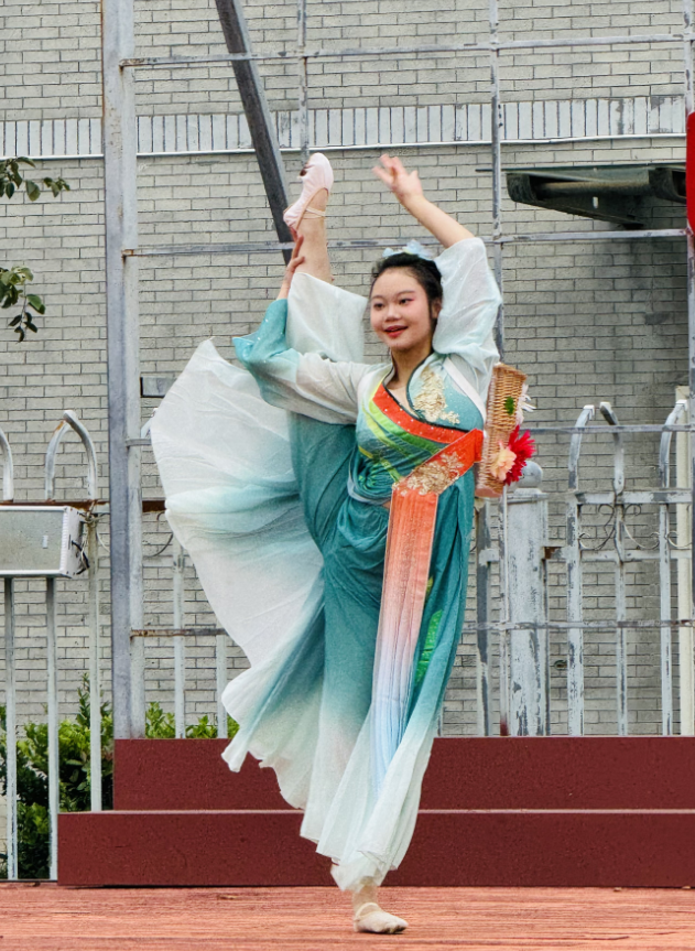 舞台表演环节迅速点燃全场氛围。英语社成员以流利口语演绎英文歌曲,发音纯正,歌声优美,相得益彰;舞蹈社的民族舞表演韵味悠长,衣袂翩跹间尽显传统文化魅力;现代舞社的街舞表演节奏强劲、活力四射,高难度动作与默契配合引得台下欢呼不断,将现场气氛推向高潮。