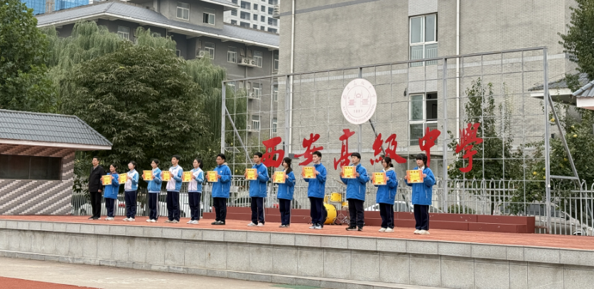 随后,现场举行2024-2025学年优秀社团颁奖仪式。在全场热烈的掌声中,12个表现突出的优秀社团代表依次登台领奖,副校长张红利为优秀社团代表颁发奖状。这一张奖状,不仅是对过往成绩的嘉奖,更是对社团文化与西高精神的传承。