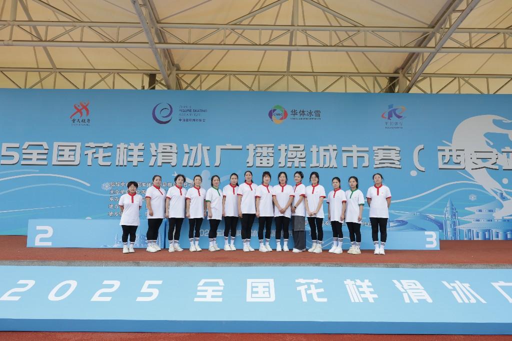 作为2025全国花样滑冰广播操城市赛继北京站、哈尔滨站后的关键第三站,西安站以"全民健身、健康中国"为引领,吸引了来自全市26支队伍、700余名7至65周岁的跨龄运动爱好者齐聚一堂。从朝气蓬勃的学校青少年团体,意气风发的企事业单位代表队,到精神矍铄的银发战队,参赛者们以陆地演绎花样滑冰的优雅旋转与流畅步法,在古城墙下的现代化校园里,绘就了一幅"长安自古帝王都,今朝冰舞满庭芳"的生动图景。
