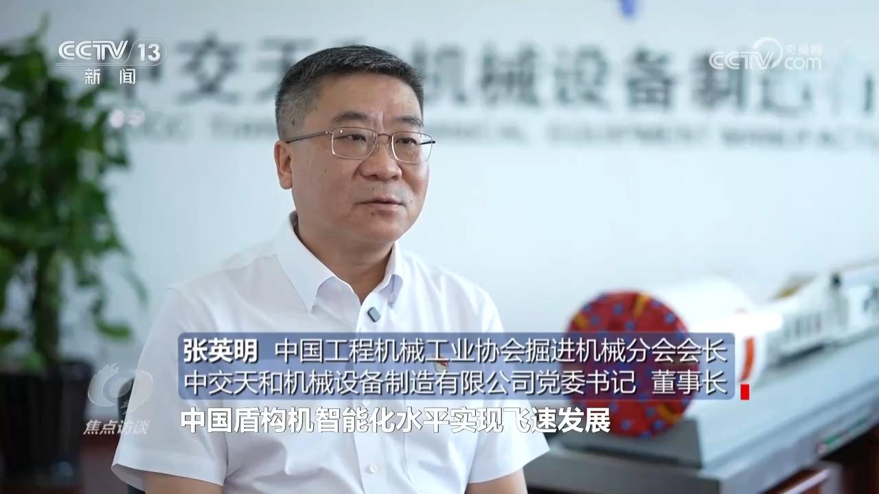 中交天和机械设备制造有限公司设计院副院长、总工程师徐寅:“我们这台盾构机可以说是大块头有大智慧,这台盾构机在核心零部件以及智能化程度达到了国际领先水平,我们的新技术目前运用了大概有20多项。”
