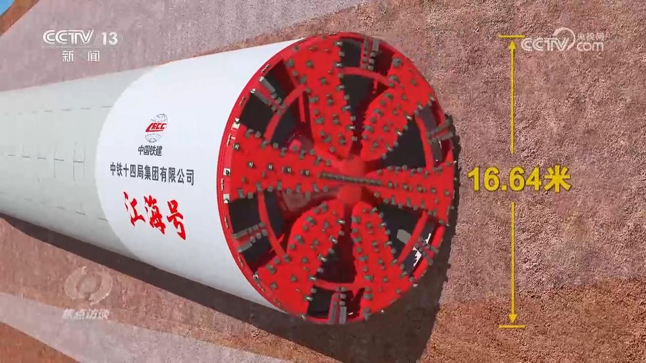 中铁十四局大盾构专家陈健:“它采用的是双向六车道,采用高速公路的设计标准,设计时速是100公里每小时,所以它比城市干道或者其他过江通道建设的标准更高,速度更快,所以隧道断面也达到了16米。隧道采用盾构法施工,它要实现一边掘进,一边要进行衬砌安装,所以隧道的开挖直径要大于16.64米。”
