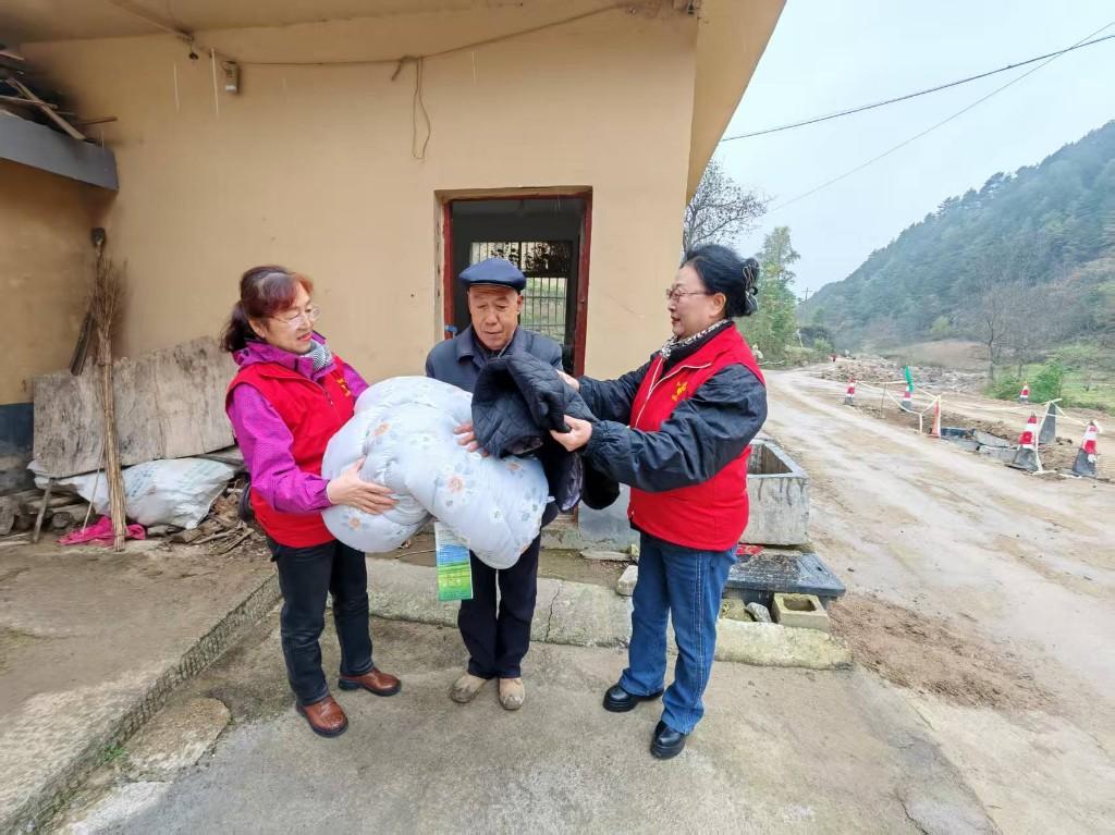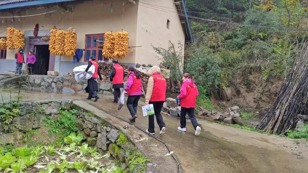 清晨天空阴沉,大雨倾盆,志愿者们冒雨行驶三个小时盘山路,途中部分路段因塌方变得崎岖难行,但大家始终坚定前行。每到一户,志愿者们都将精心准备的棉衣、棉被、毛毯、棉门帘、床单、枕套、内衣和轻便舒适的运动鞋等物资一一送到老人手中。