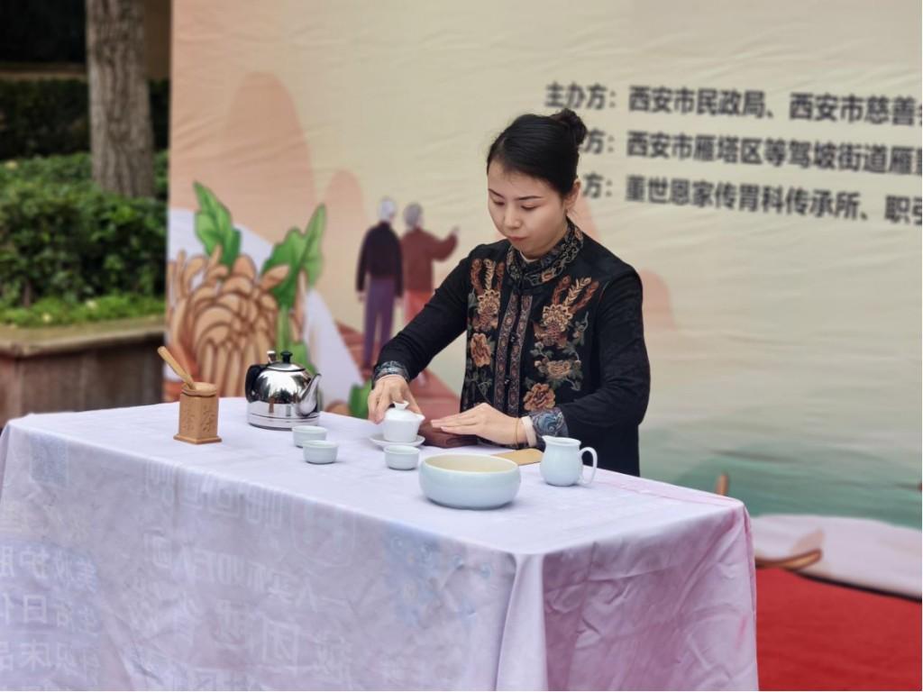 文艺演出精彩纷呈。郑彩霞一曲《节日欢歌》清亮动听,如秋日暖阳点燃全场热情;先锋队表演的舞蹈《爷爷奶奶和我们》轻盈生动,将祖孙亲情娓娓道来,引得老人会心微笑;田敏志的快板《逛西安》接地气、有韵味,钟楼、大雁塔等城市记忆在节奏中跃动,唤起老人们对家乡的深深眷恋。