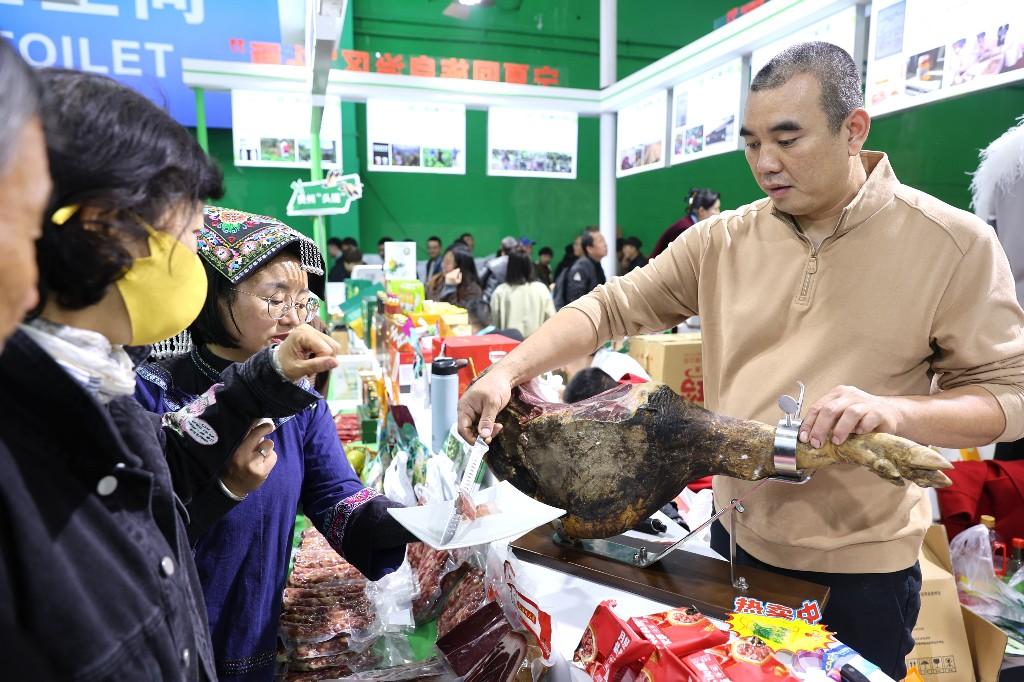 从“自家吃”到“销全国” 展位前,贵州“头雁”汪小民正忙着现切火腿,参观者尝后纷纷称赞“咸香入味,好吃”。 “打小就看父亲做火腿,以前顶多自家吃,哪敢想能做成产业。这都是‘头雁’培训项目给的底气。”贵州盘州泥猪河食品公司负责人汪小民笑着说。