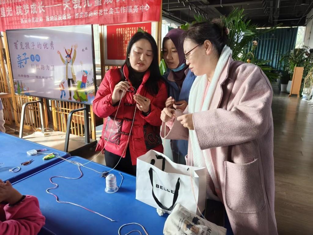 三秦都市报-秦闻讯(记者 姬娜)10月26日,西安市青年路第二社区“看见孩子的优秀”亲子工坊第二阶段课程“手工编绳·共辫亲情”温情开课。张会主讲,儿童服务站张婕协同指导,他们以“编绳”为媒介,将技能传授与情感传递深度融合,让亲子在一针一线的交织中编织亲情,见证成长。