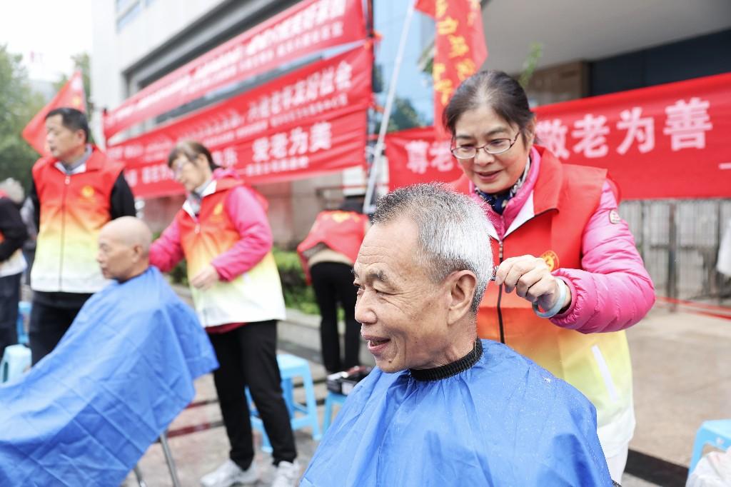 义剪区的理发师们同样忙得不可开交。刚理完发的李阿姨对着镜子反复端详,笑着说:“剪得真精神。我腿脚不便,平时出门理发要绕远路,这下在家门口就解决了。”剪刀开合间,十多位老人都换上了利落的发型,脸上满是满意的笑容。