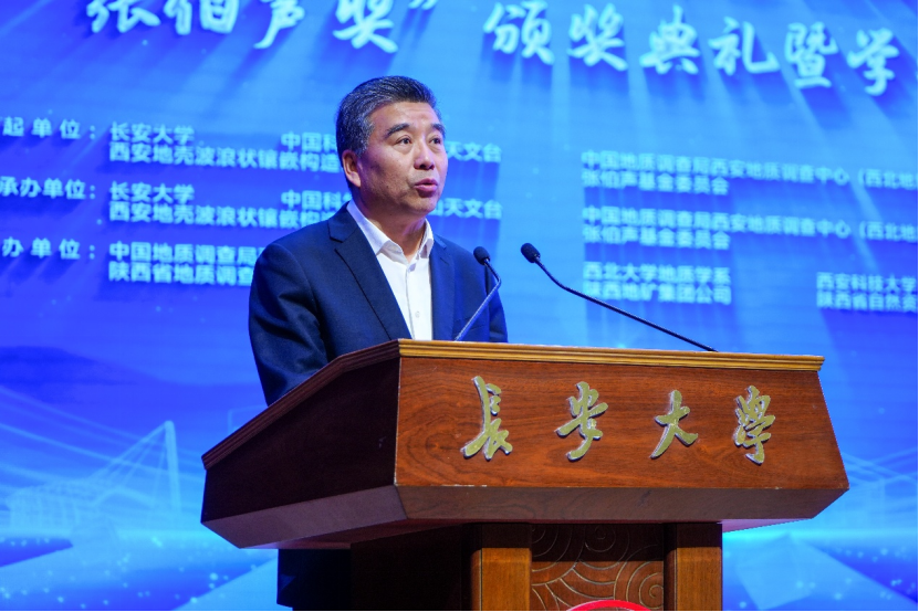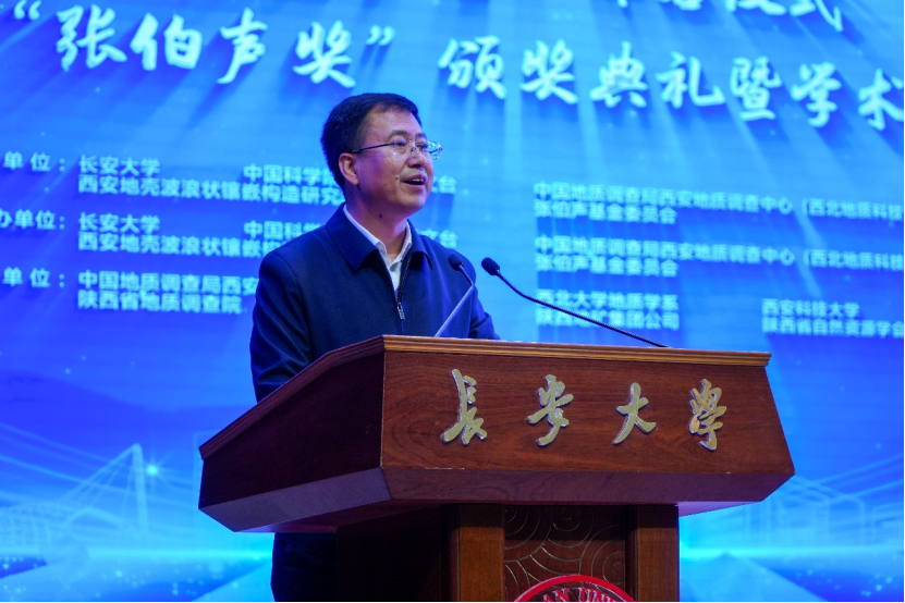 会议颁奖阶段,中国地质调查局西安地质调查中心副主任计文化致辞,他强调了在张伯声科学精神激励下,推进地质找矿与科技创新的重要意义。
