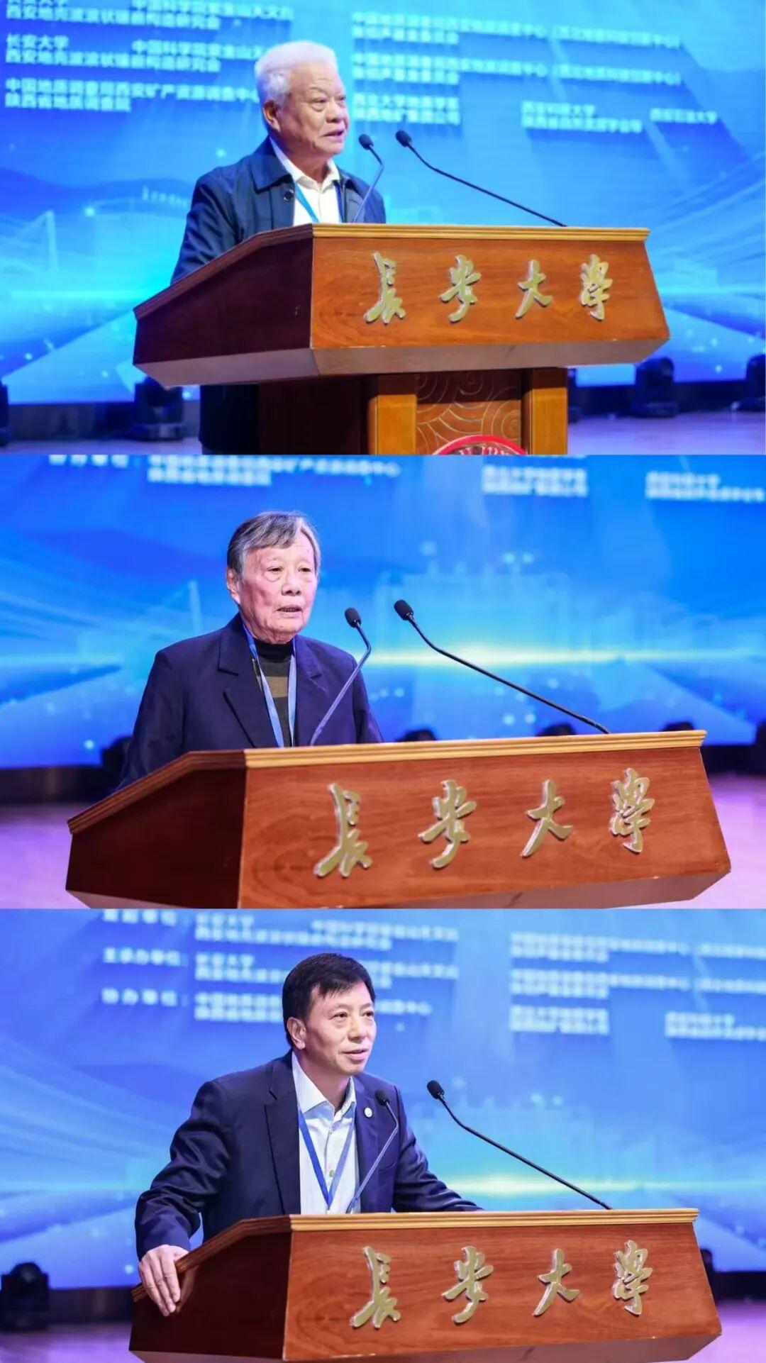 张国伟院士、王双明院士,原国土资源部党组成员、中国地质调查局原局长孟宪来,长安大学党委书记陈志坚等出席活动。徐冠华院士、任纪舜院士、舒德干院士以及上海、广东等地校友会发来视频与贺信祝贺。来自中国地质调查局、兄弟高校、科研院所、地矿行业单位的专家学者,江苏、深圳、云南校友会代表,获奖代表及长安大学、西北大学、西安科技大学、西安石油大学等四校师生近千人齐聚一堂,共同见证这一载入史册的荣耀时刻。典礼由长安大学党委副书记李文雄主持。