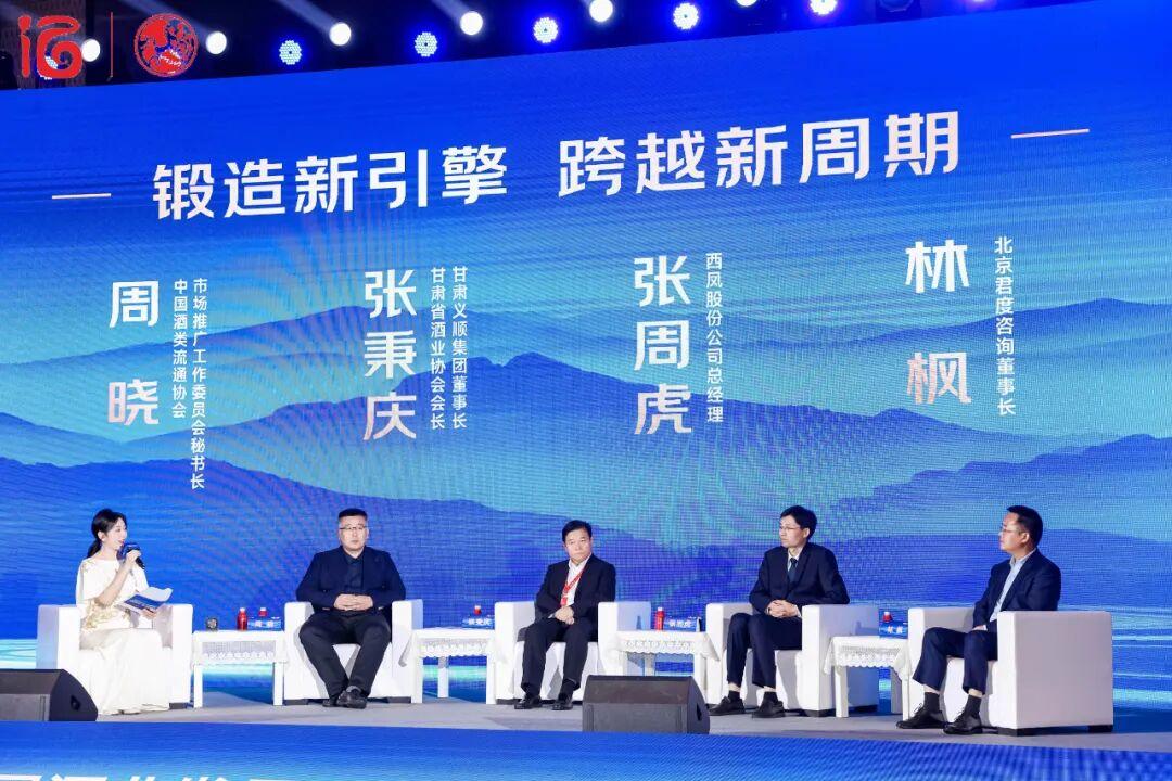 在“锻造新引擎,跨越新周期”圆桌论坛中,与中国酒类流通协会市场推广专业委员会秘书长周晓,甘肃省酒业协会会长、甘肃义顺集团董事长张秉庆,西凤股份公司总经理张周虎及北京君度卓越咨询董事长林枫共同围绕行业新周期特征与破局路径对话。聚焦品质守正,持续文化赋能,推动创新营销,为西凤酒的高质量发展乃至整个白酒行业增添更多的活力和内涵。