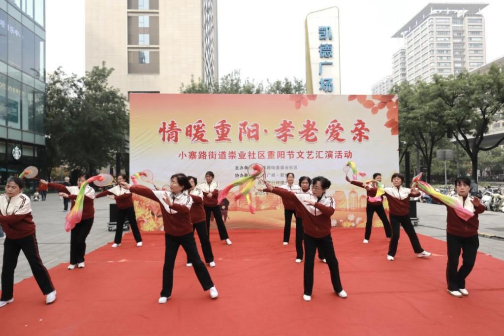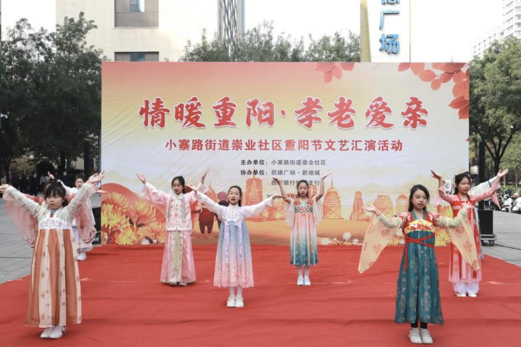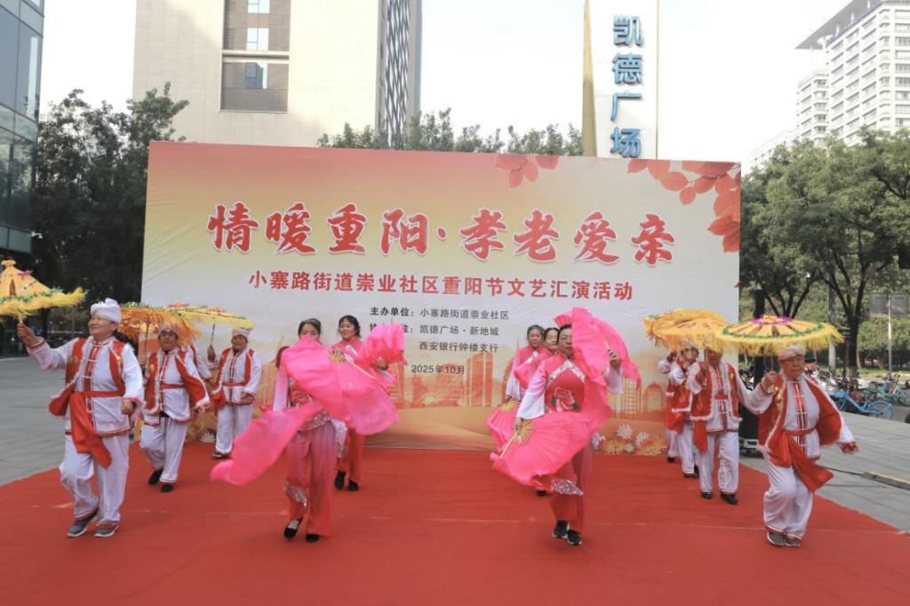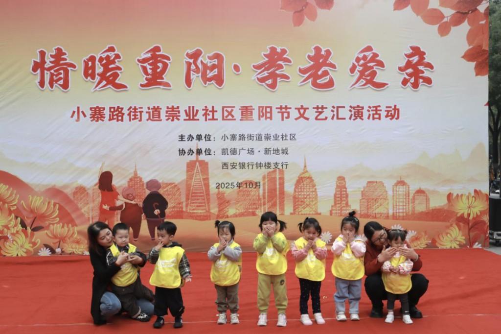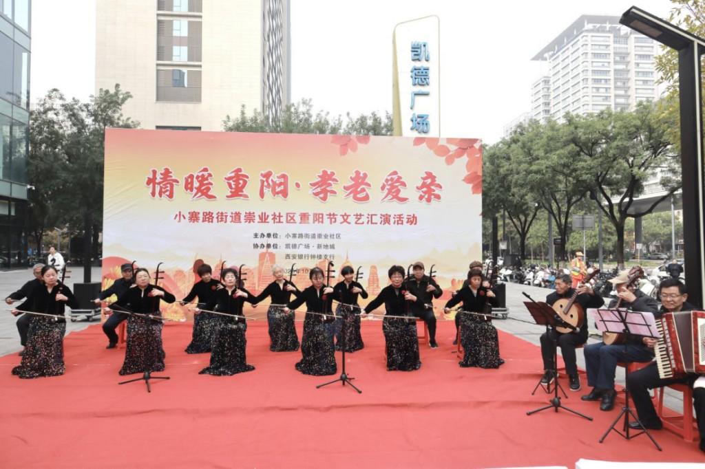 三秦都市报-三秦网讯(记者 姬娜)10月27日,西安市小寨路街道崇业社区联合凯德广场·新地城、西安银行钟楼支行,共同举办“情暖重阳·孝老爱亲”主题文艺汇演活动。活动紧扣社区“一老一小”特色服务理念,打造了一场跨越年龄、共享天伦的温情文化盛宴。