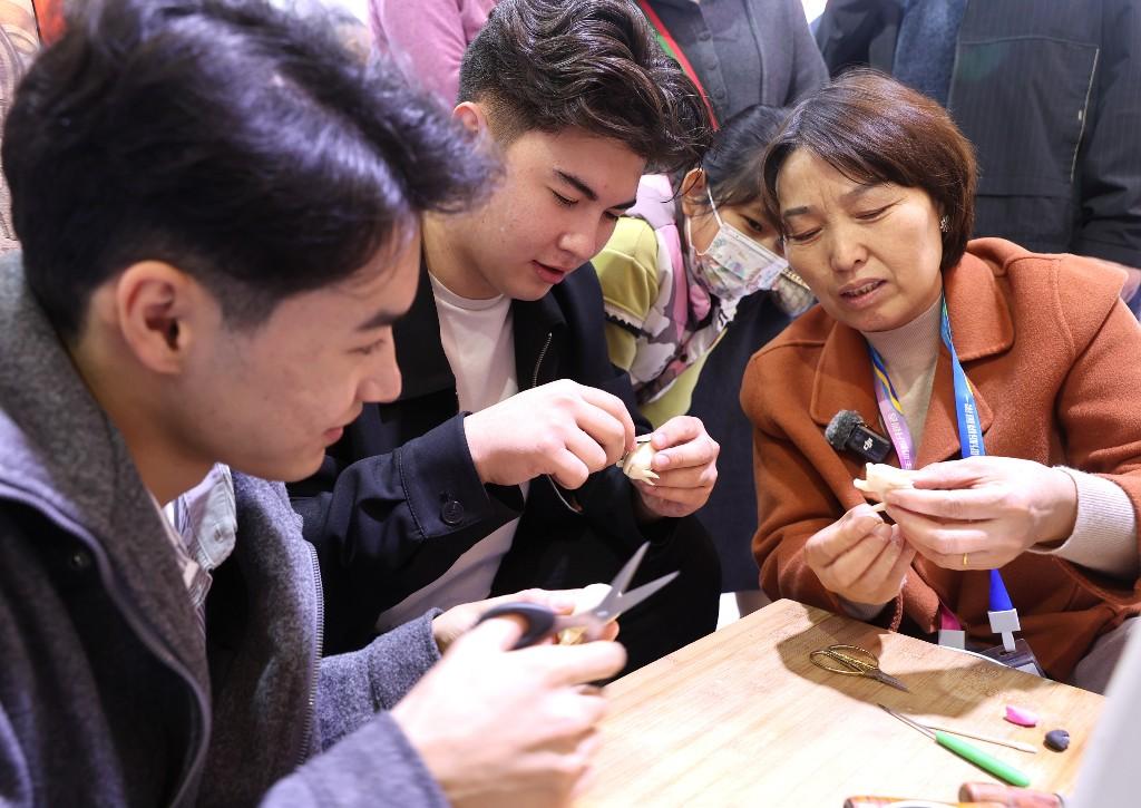 听到“国泰民安”四个字,明小林立刻拿出手机搜索翻译,弄懂含义后连连点头:“太有新意了。用传统手艺表达对国家的祝福,这种方式很特别。”
