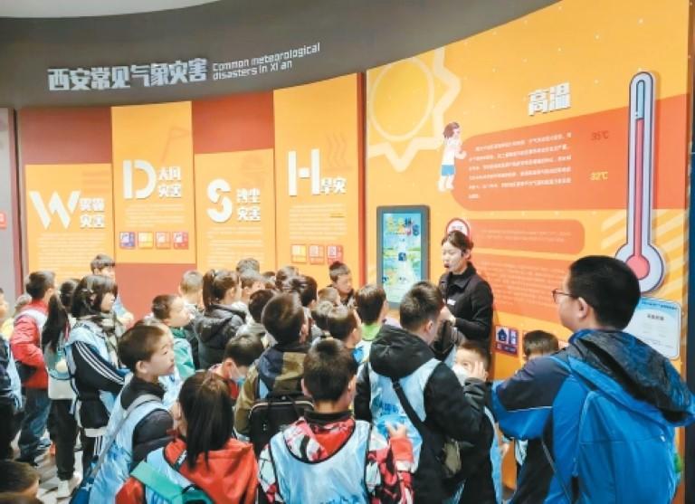 孩子们在西安减灾科普馆认真倾听讲解员的讲解