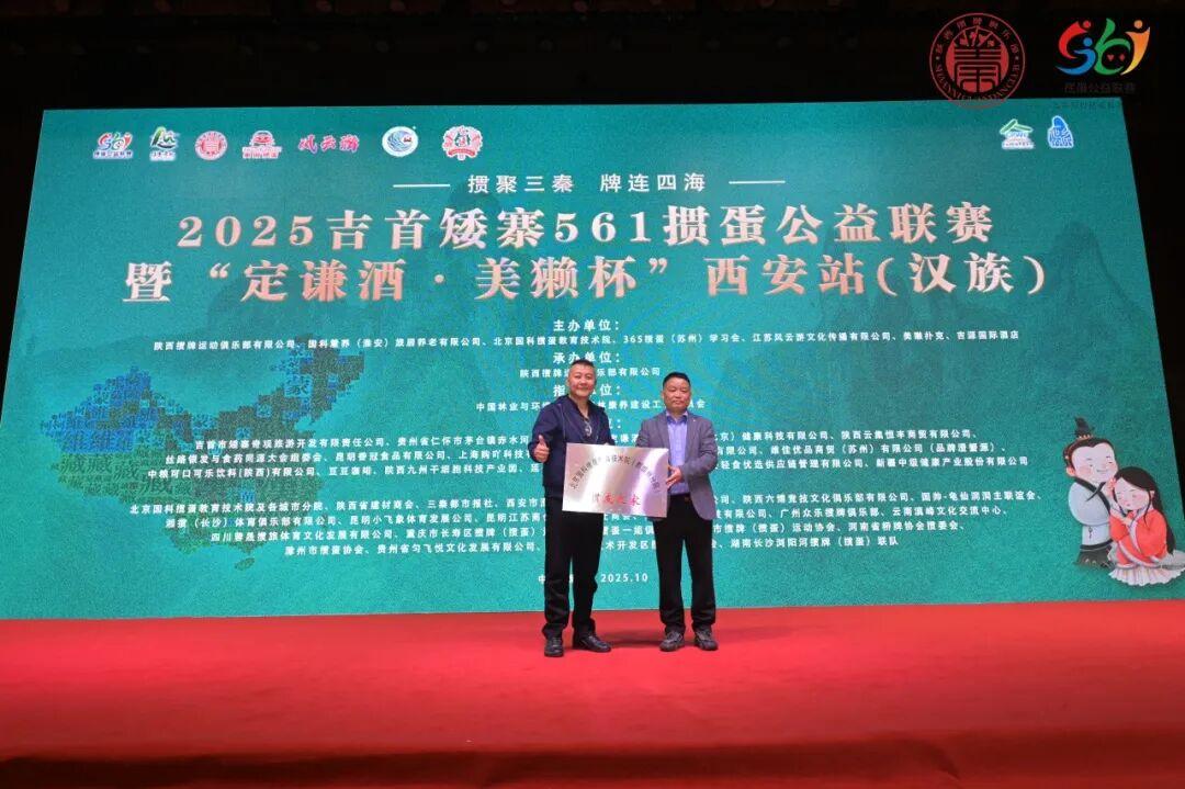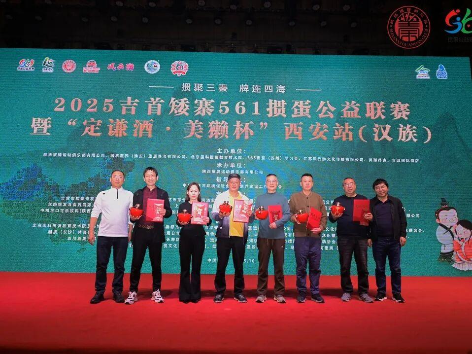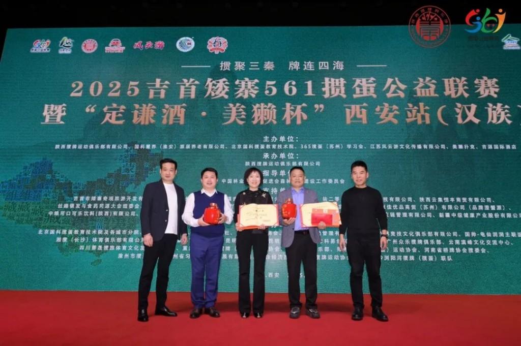 三秦都市报-三秦网讯(记者 任荣)2025年10月24日至26日,古都西安迎来了一场极具影响力的全国性掼牌盛事——由陕西掼牌运动俱乐部、国科慧养(淮安)旅居养老有限公司、北京国科掼蛋教育技术院、江苏风云游文化传播有限公司、美獭扑克等数十家单位共同举办的2025吉首矮寨561掼蛋公益联赛暨“定谦酒·美獭杯”西安站比赛在吉源国际酒店举办并圆满收官。此次赛事吸引了全国数十个省市的高水平战队齐聚一堂,众多异地冠军选手与知名俱乐部的参与。其不仅是一场智慧与默契的激烈碰撞,更是一次各省文化与古都千年文化的深度对话。
