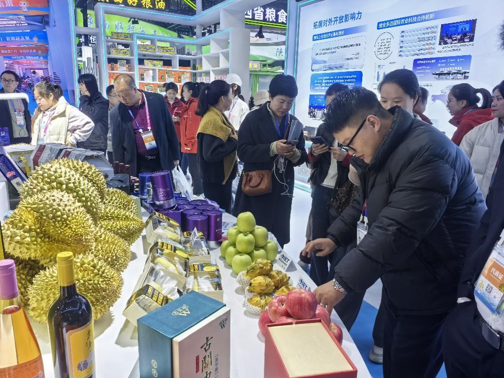 本届农高会围绕农业新品种培育、耕地质量提升、农机装备研制等农业科技创新重点领域,设置了室内展、田间展、云上展、海外展四大展览板块,总展览面积14万平方米。杨凌发展公司作为省属国有企业首次在室内设展,在农业高新技术企业展设置了公司展台,携带了越南、泰国榴莲、波罗蜜等进口水果和陕西苹果、冬枣、猕猴桃、桑椹果汁等10余种本地特色水果、饮品和农机参展,印制了2000余份宣传册向专业观众发放,积极推介公司主营业务和贸易产品。在杨凌发展公司展位前始终人头攒动,吸引了大量行业专家、合作伙伴及消费者驻足品鉴、交流洽谈,公司品牌知名度与市场认可度得到显著提升。