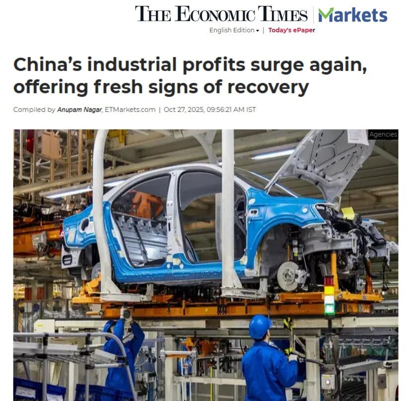 印度《经济时报》的报道说,高科技制造业和装备制造业是中国工业利润回升的主要驱动力。