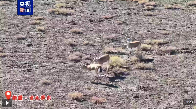 近日,在新疆昌吉回族自治州吉木萨尔县的戈壁滩上,鹅喉羚组团现身,低头啃草时软萌可爱,撒腿奔跑时飒气十足,妥妥的大自然版“治愈系大片”。