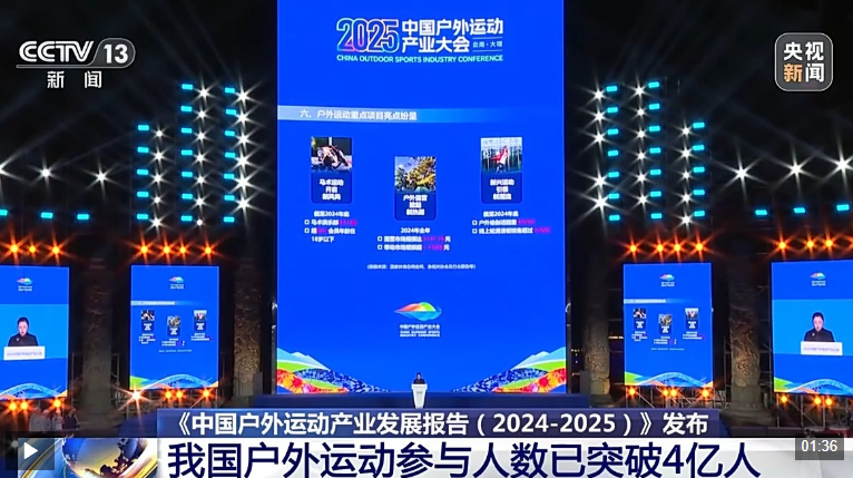 2025中国户外运动产业大会近日在云南大理举行。大会期间,国家体育总局发布《中国户外运动产业发展报告》。报告显示,我国户外运动参与人数已突破4亿人,户外运动产业成为体育产业经济增长的重要力量。