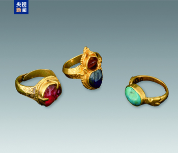 △梁庄王墓出土的金镶宝石戒指,湖北省博物馆藏
