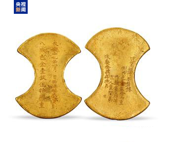△梁庄王墓出土的永乐十七年金锭,湖北省博物馆藏