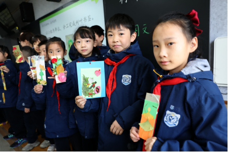 “今天我利用生活中最常见的树叶、花这些东西,制作了一个个漂亮的书签,让我明白环保是用更聪明的方法利用资源。我想把这种好习惯带回家,跟爸爸妈妈一起进行‘无废生活’。”四年级的学生郑梓萱说。