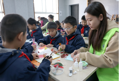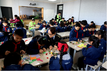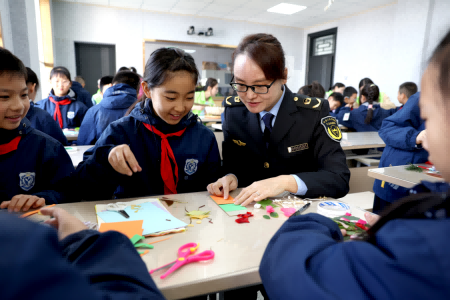 “大家首先制作好长方形的底板,接下来选择树叶制作喜欢的图案……”随后,在老师的指导下,孩子们与新城分局工作人员一起开始“树叶创意书签”的制作,教室里瞬间热闹起来。