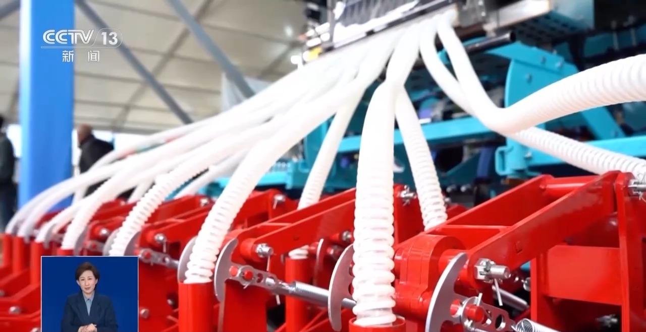 在农高会的现场还有一个新型的小麦播种机,它就像一个巨大的八爪鱼,小麦的播种是采用气吹方式,非常精准。另外,它的刀头是防缠绕的,可以一边整地、一边施肥、一边播种。