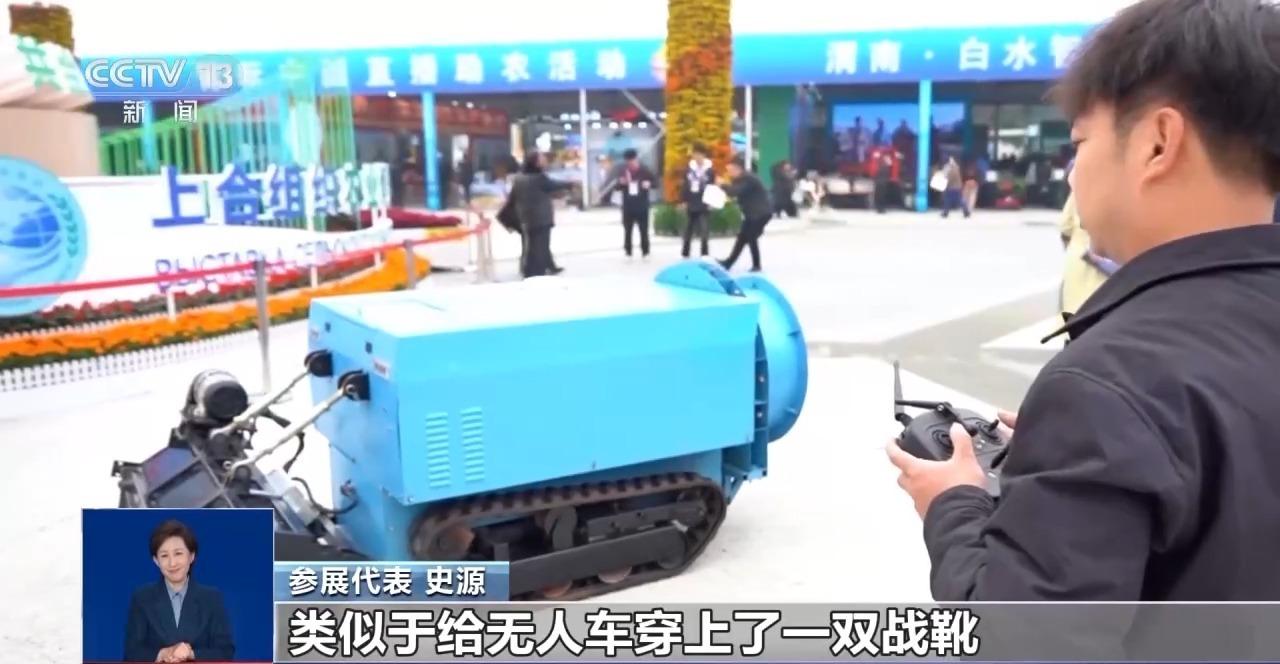 在杨凌农高会,动动手指就可以让一个大型通用机器人动起来,自主作业起来,来自全国各地的最新最尖端的农业机器人汇集在农高会同台竞技。