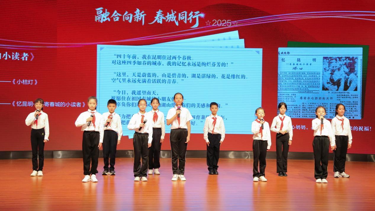 1982年,作家冰心在《春城晚报》“小桔灯”专栏题字并寄语。春城晚报11位小记者在现场诵读了《致敬文字·接力光芒》,沿着时光脉络重温名家与新闻前辈笔下见证的山河故事,向老一代新闻工作者致敬。
