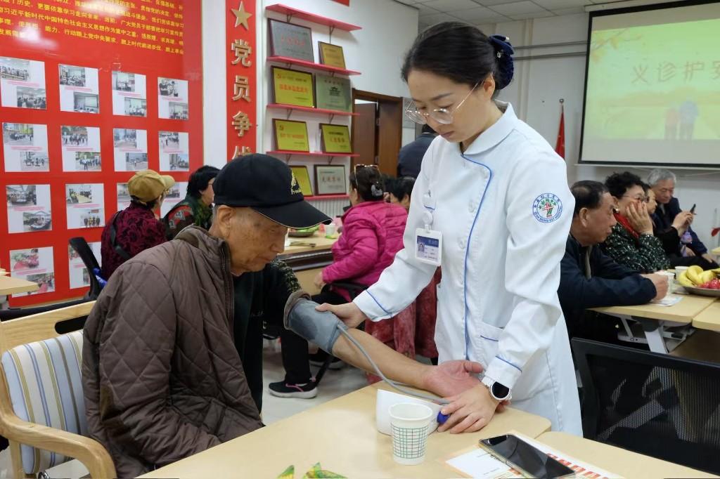 健康义诊区前,红会医院医护人员为长者测量血压、检测血糖,针对“高血压饮食调理”“关节疼痛护理”等问题答疑解惑,并发放健康手册。“在家门口就能找专业医生咨询,太方便了!”李阿姨手持手册连连点赞。