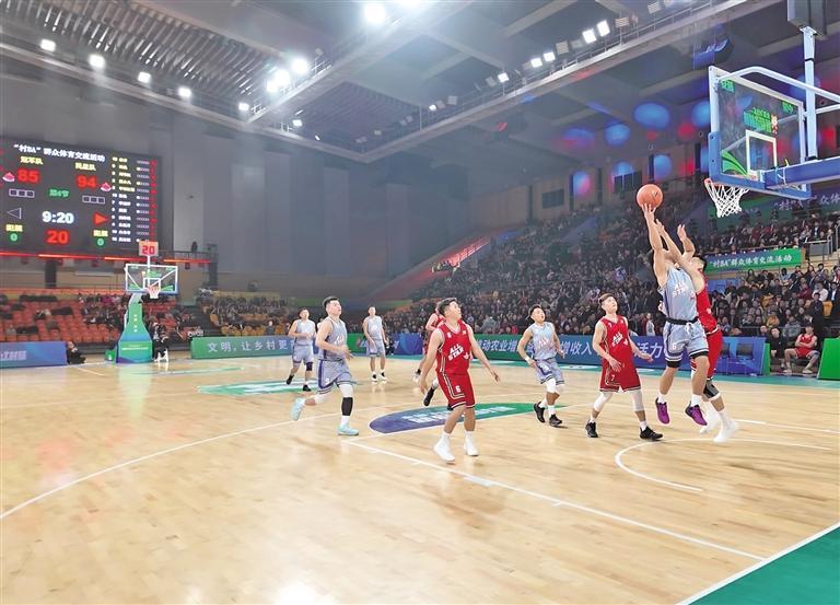 十月二十八日,中国文明乡风大会“村BA”群众体育交流活动现场,两支参赛队伍正在比赛。