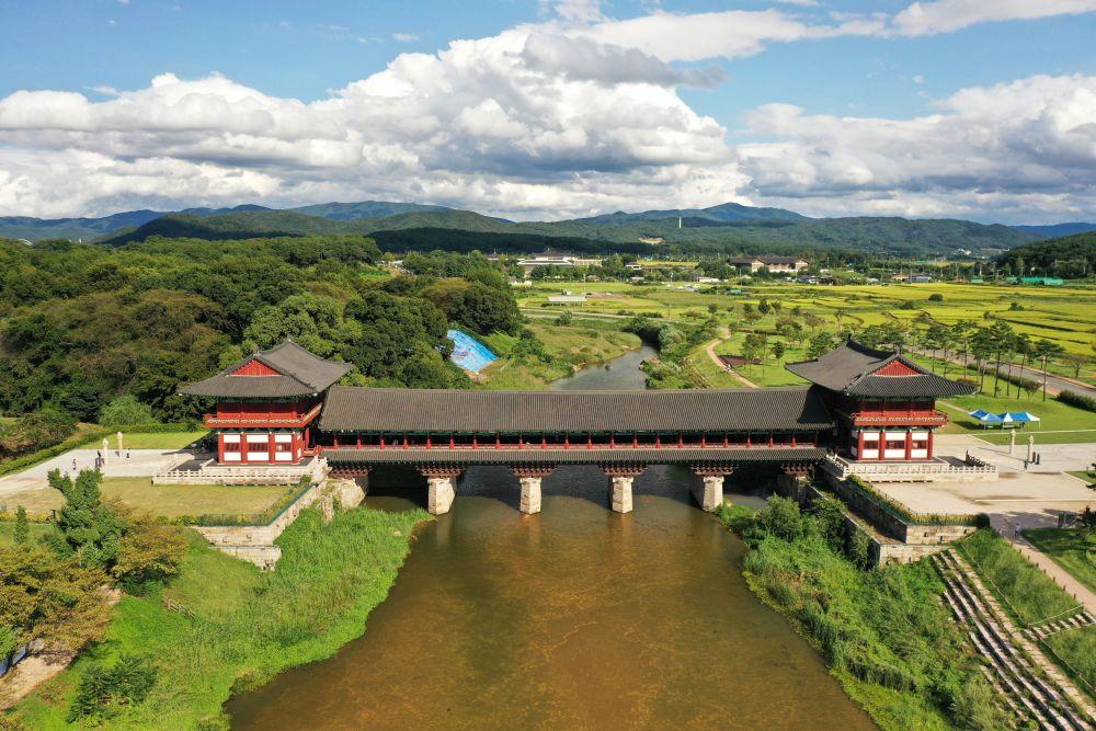 9月20日拍摄的韩国庆州地标景点“月精桥”(无人机照片)。