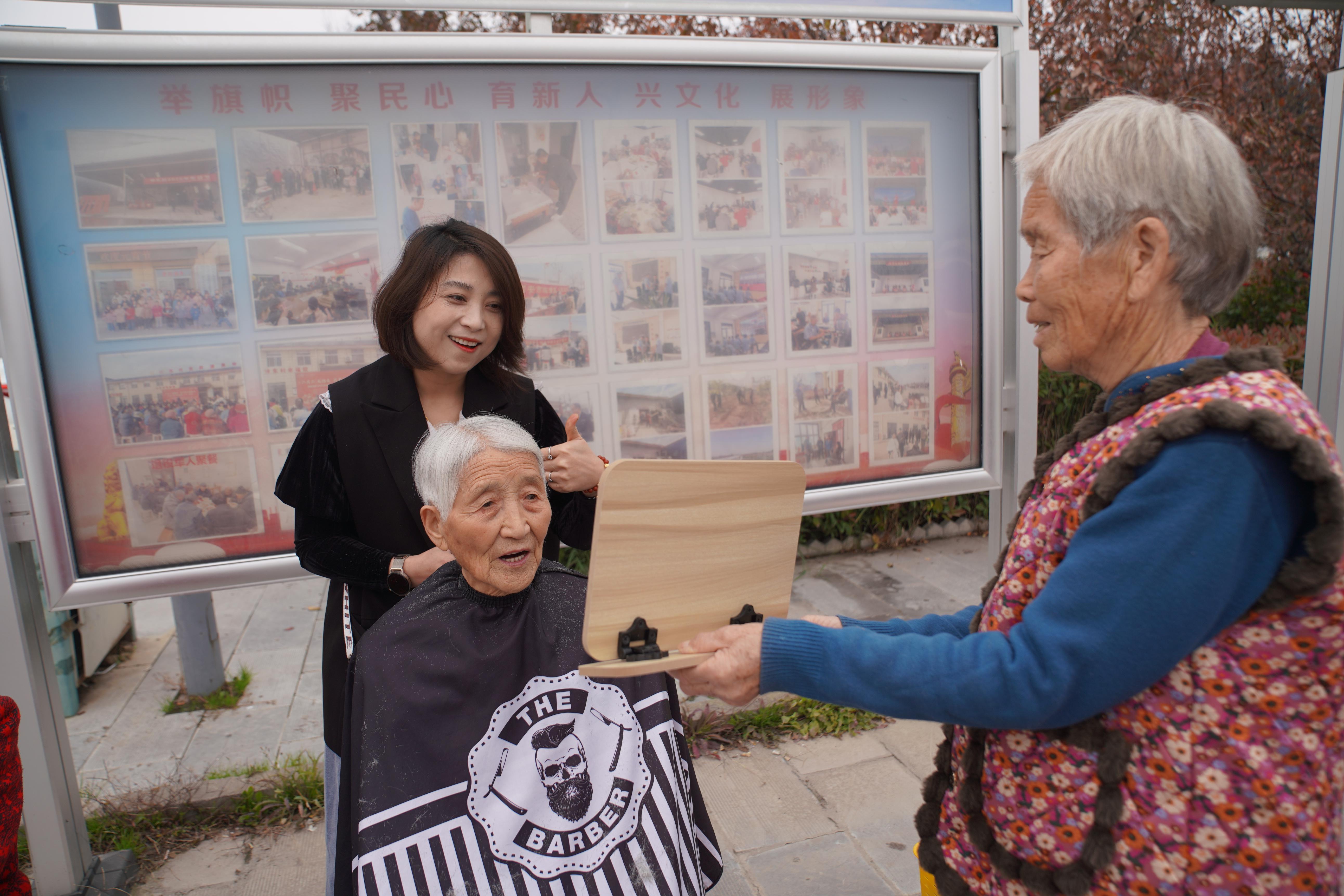 理发区同样排起了长队。理发师傅手法娴熟,工具严格消毒,一边为老人修剪发型,一边唠着家常。刚理完发的王玉芹老人照着镜子笑道:“理完发,整个人都精神了!”