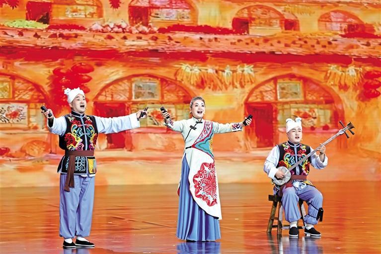 10月29日,中国文明乡风大会全国移风易俗优秀文艺节目集中展演在延安举行。图为演员表演陕北说书《过大寿》。 本报记者 母家亮摄