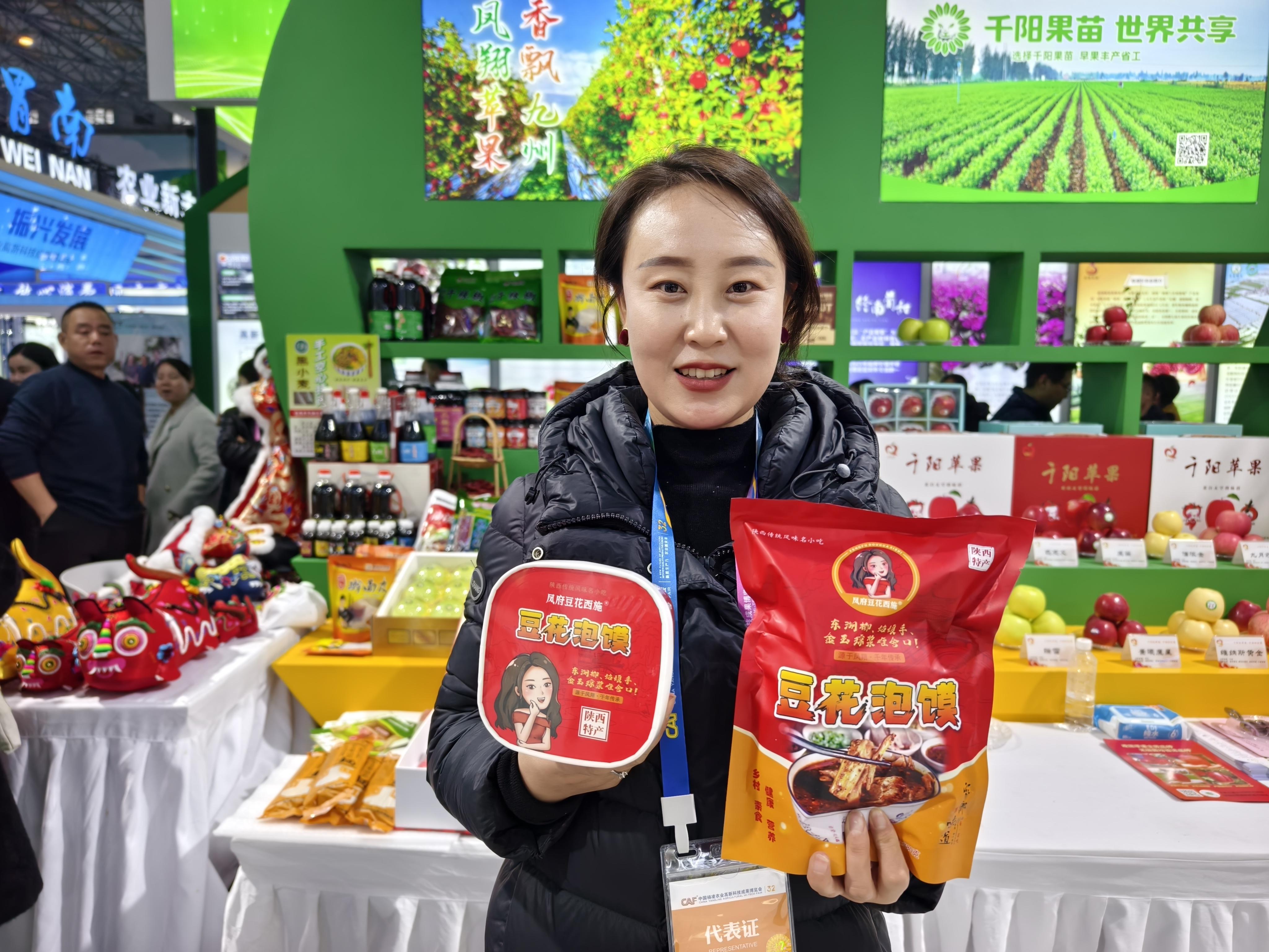 三秦都市报-三秦网讯(记者 左婷)近日,第32届杨凌农业高新科技成果博览会在陕西杨凌圆满举办。本届农高会上,宝鸡展团以“新质生产力・农业新未来”为主题,携全市80余家企业的120个品种、1100余个优质产品集中亮相,全方位展现宝鸡现代农业发展成果。其中,作为陕西省非物质文化遗产的凤翔豆花泡馍,凭借鲜嫩爽滑的口感与深厚的文化底蕴,成为宝鸡展团的“流量担当”,吸引众多参观者驻足品尝,成为展会现场一道亮眼的风景线。