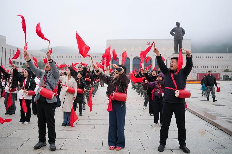 延安红街的《再回延安》沉浸式演出则让历史“活”了起来。以老红军刘宝顺的回忆为主线,“行走式”演绎的“红旗班”战士爬雪山、过草地及接旗宣誓的情节,让师生们在身临其境中体悟长征精神的坚韧不屈。
