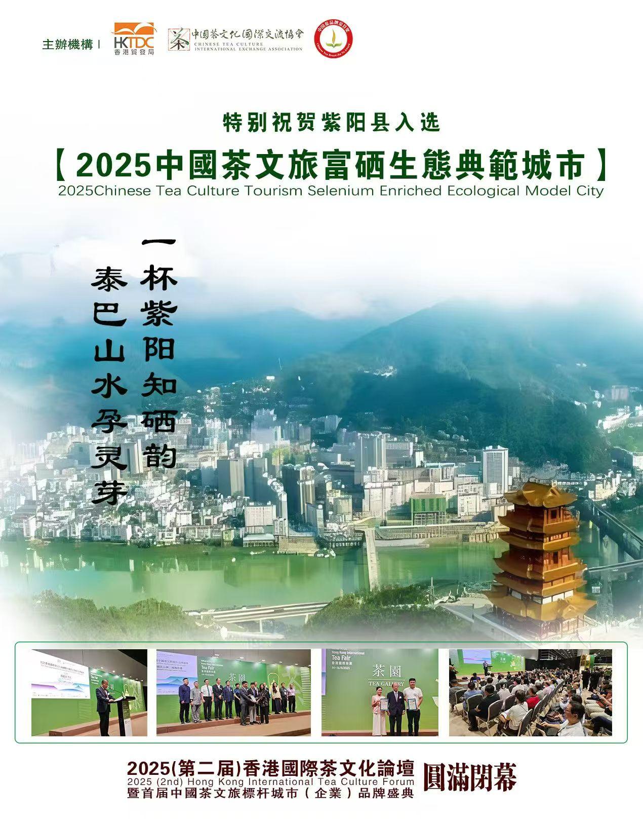 本次活动由香港贸发局、中国茶文化国际交流协会等机构主办。紫阳县以“一杯紫阳知硒韵,秦巴山水孕灵芽”的特色形象亮相,充分展现了其在茶文旅产业融合、富硒生态资源利用等方面的突出成就。