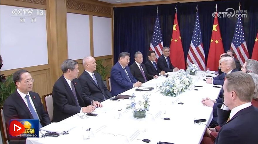 当地时间10月30日,国家主席习近平在釜山同美国总统特朗普举行会晤。
