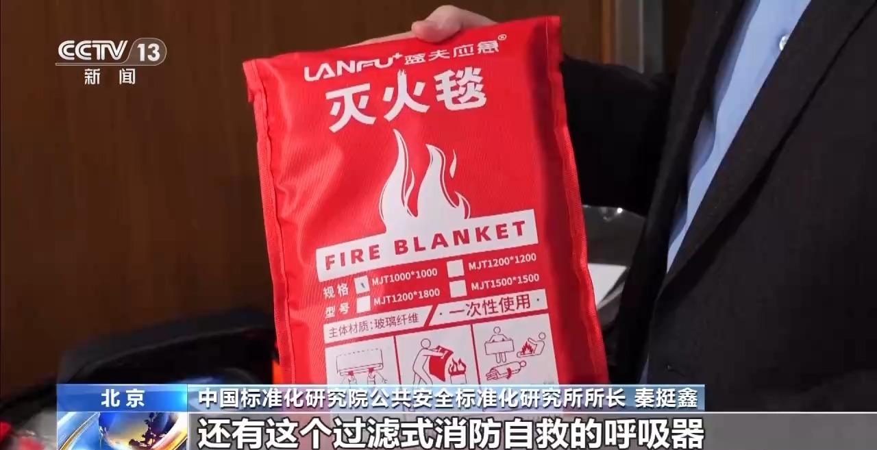 中国标准化研究院公共安全标准化研究所所长 秦挺鑫:针对火灾这个典型的场景,我们额外配了灭火毯。还有过滤式消防自救的呼吸器,以及灭火器等用品。对于洪涝灾害的扩展包,配备了漂浮式的逃生绳,分体式的雨衣,以及长效的蜡烛。针对地震这种灾害场景的地震应急包,我们额外配备了阻燃的防砸头套,还配备了一个可折叠多功能铲,能够有效应对地震场景一些应急逃生需求。